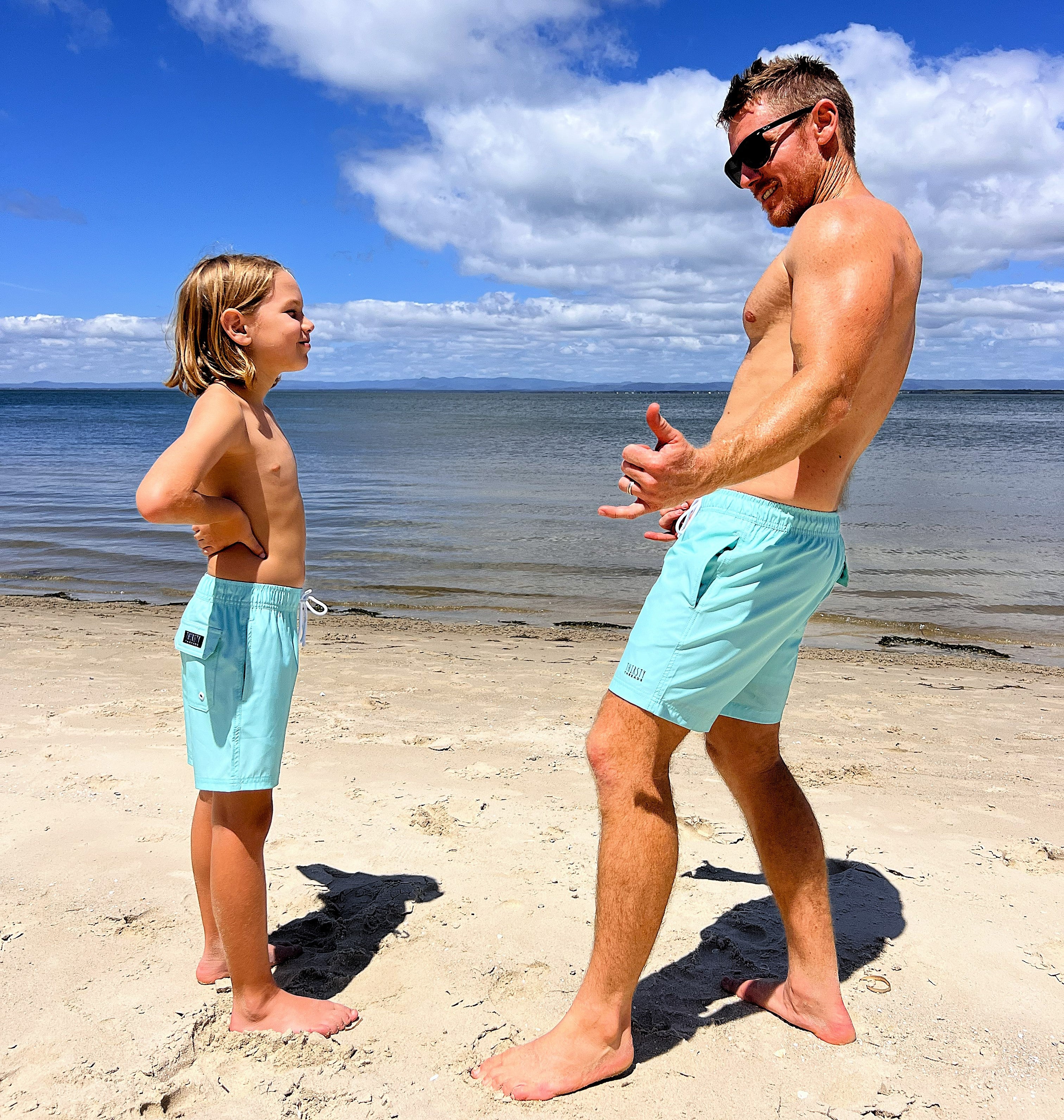Meet Mint Geo – the modern all-rounder. Our Boys Mint Geo Hybrid Boardshorts mix a bold mint and black geometric print with a built-in anti-chafe liner, so your little legend can go from scootering and backyard cricket to cannonballs at the pool without needing...- $63.00