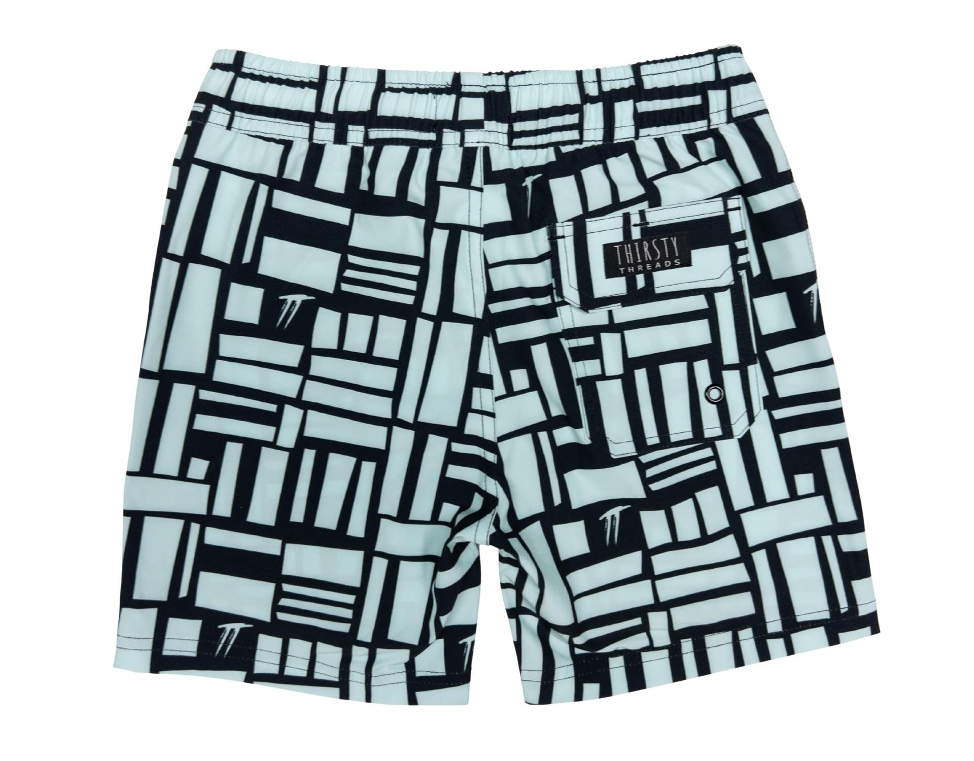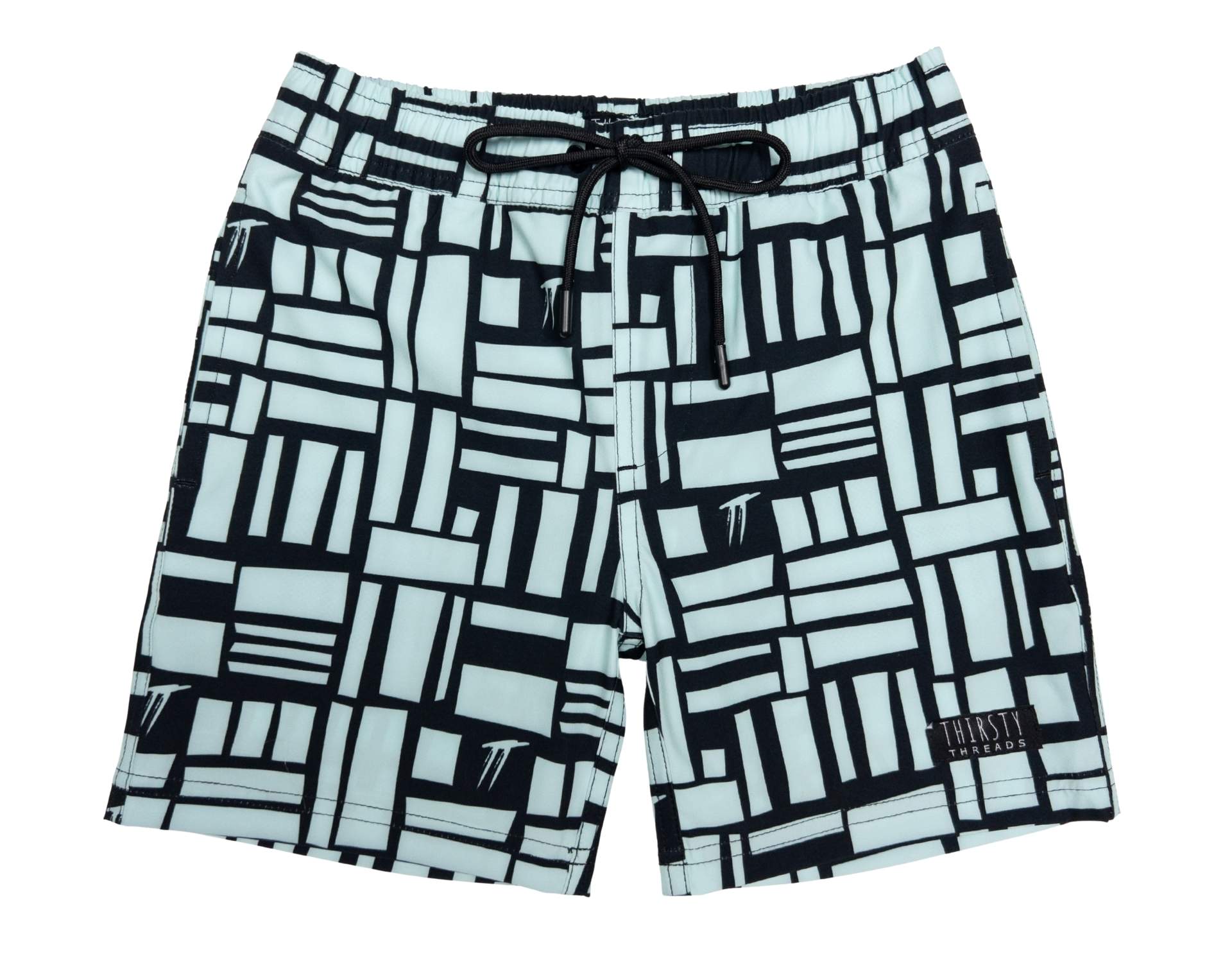 Our Boys Mint Geo Hybrid Boardshorts mix a bold mint and black geometric print with a built-in anti-chafe liner, so your little legend can go from scootering and backyard cricket to cannonballs at the pool without needing a change.