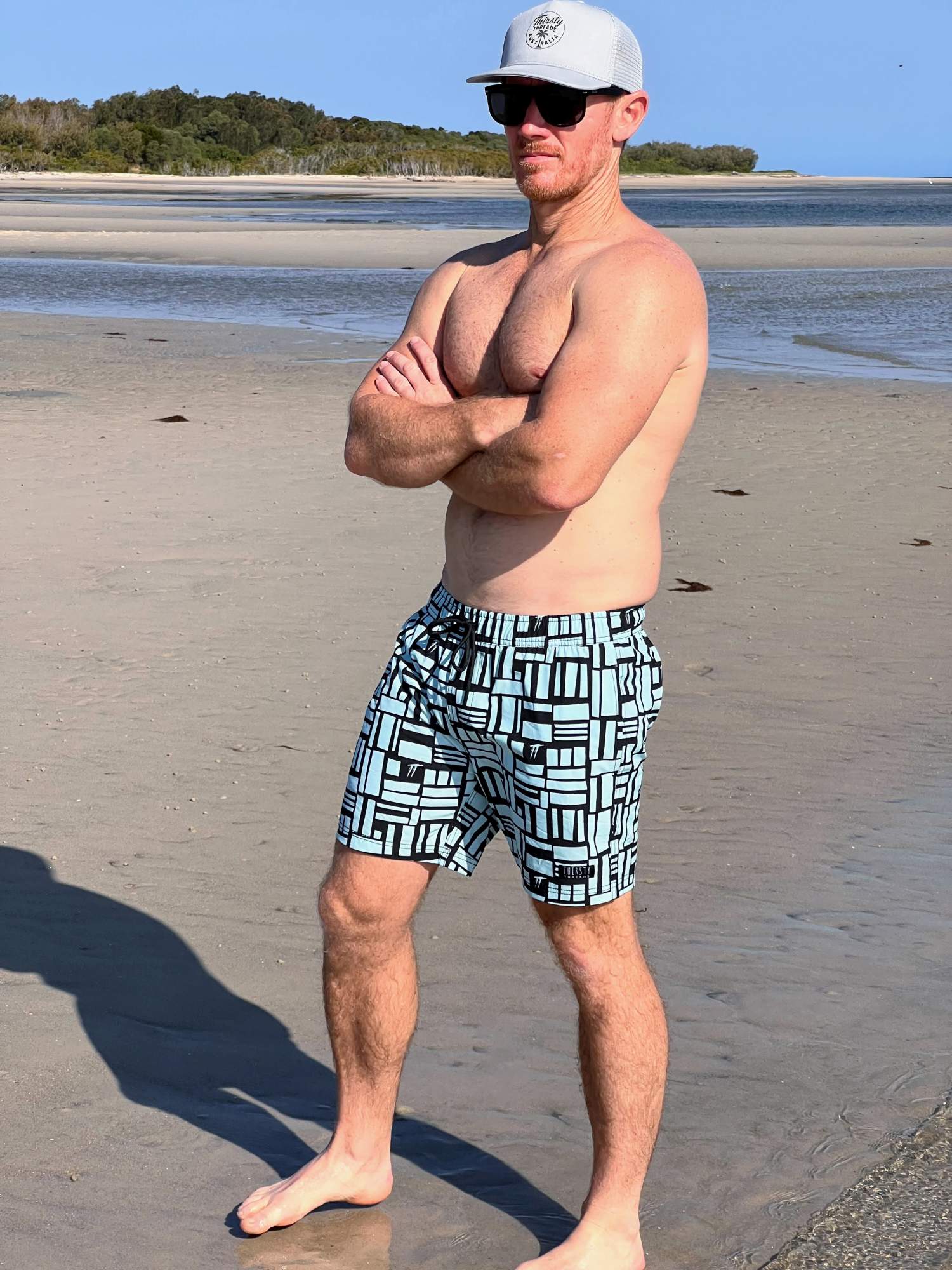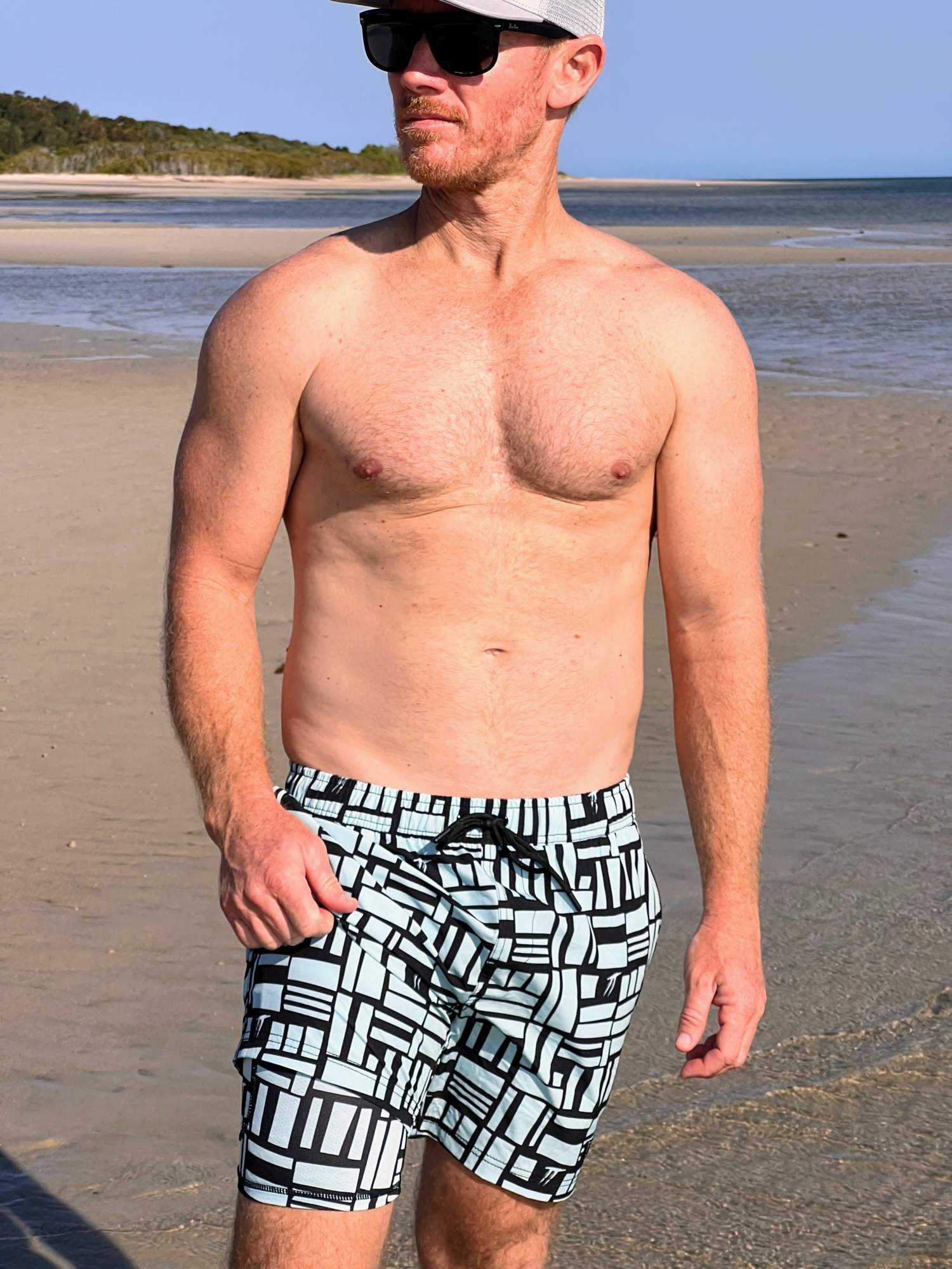 Our Men’s Mint Geo Hybrid Boardshorts combine a bold mint and black geometric print with a built-in anti-chafe liner, so you can go from morning runs to ocean dips and arvo hangs without missing a beat.